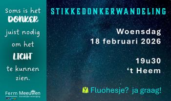 Samen maken we een tochtje door het donker. We wandelen ongeveer één uurtje en houden hier en daar een stilte moment. Zo kunnen we even stilvallen in de drukte van alledag, maken het hoofd leeg en komen even tot onszelf.