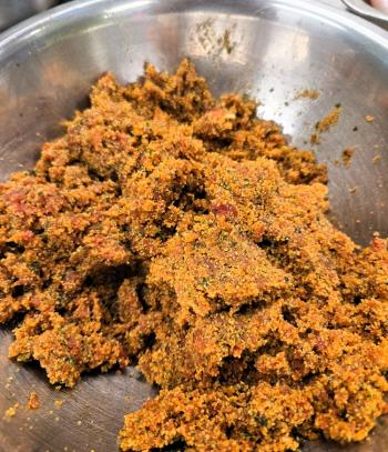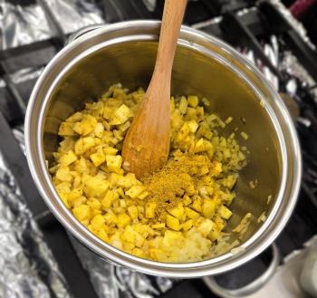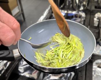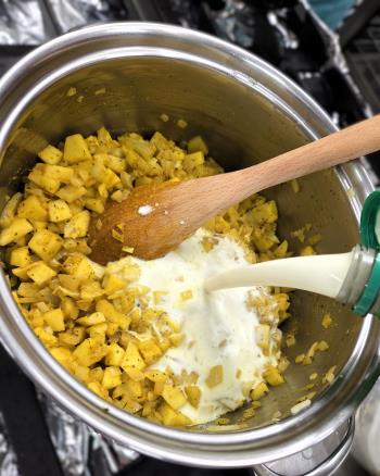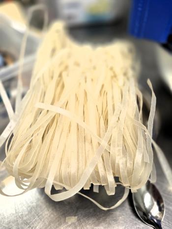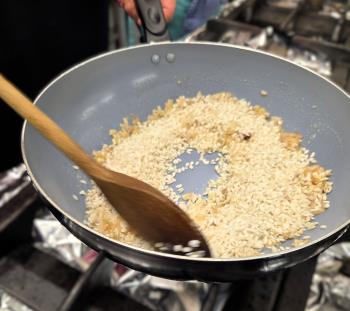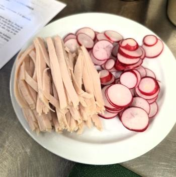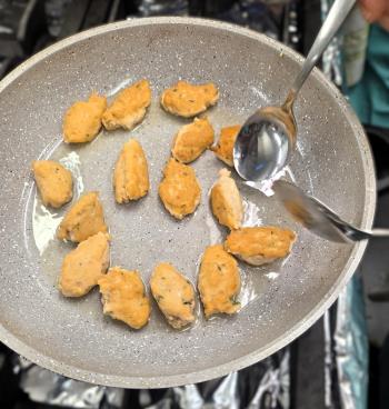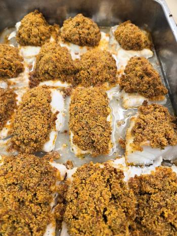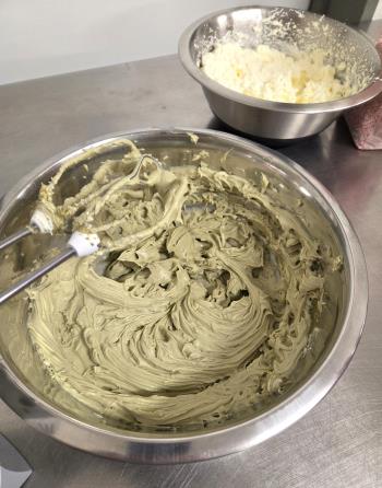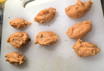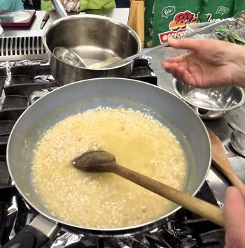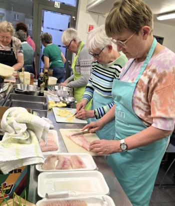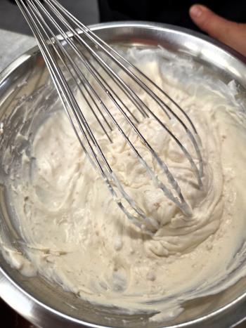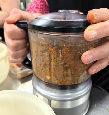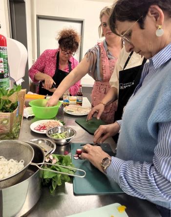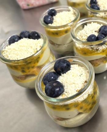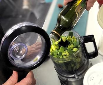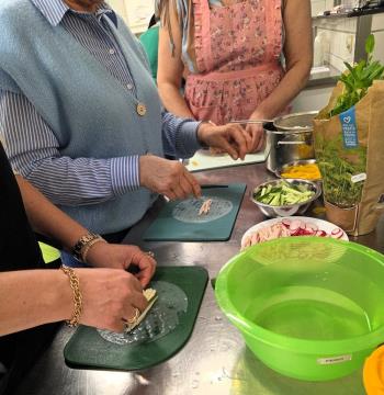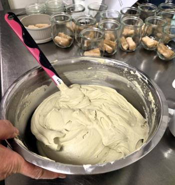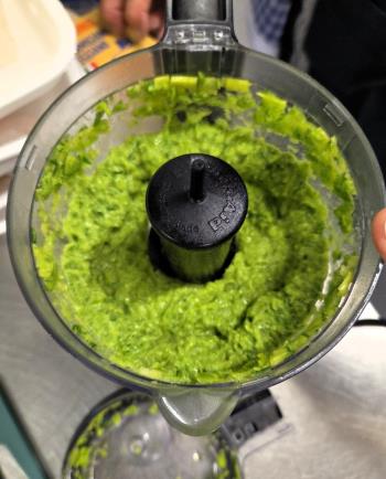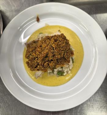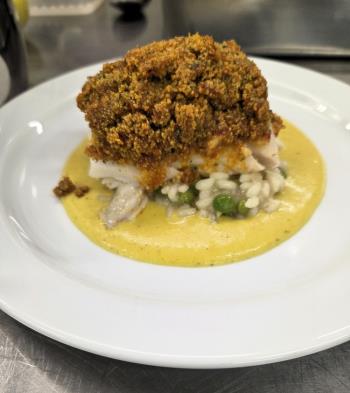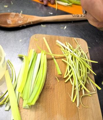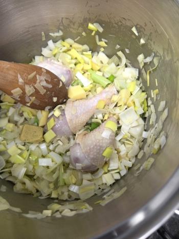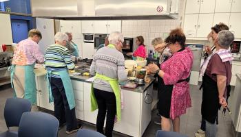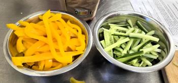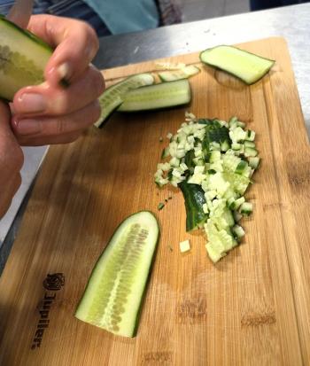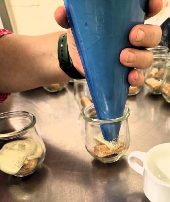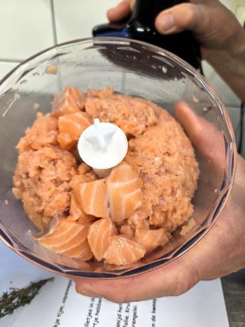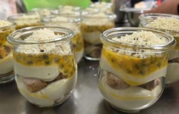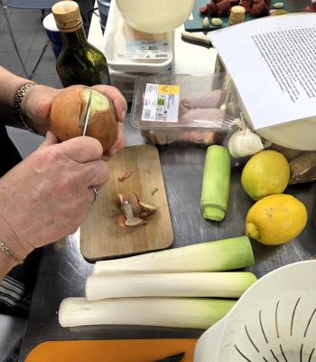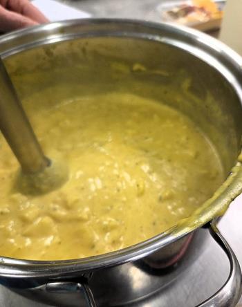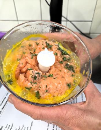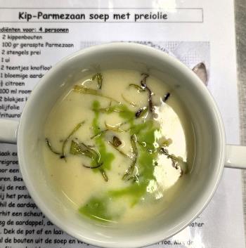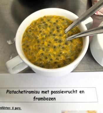 Het aroma komt je tegemoet als je de keuken binnenkomt. Wat was het weer smullen van verrassende gerechtjes. - Zalmburgertjes met kweeperendip - Spring rolls met Thaise dressing - Kip-Parmezaan soep met preiolie - Kabeljauwhaasje met kruidenkorst van chorizo, zachte currysaus en risotto verde - Pistachetiramisu met passievruchten en blauwe bessen