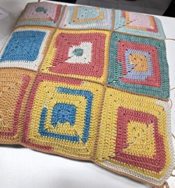 Op woensdag 12 november gaan we de granny squares kussens afwerken. 19u30 in 't Heem.