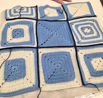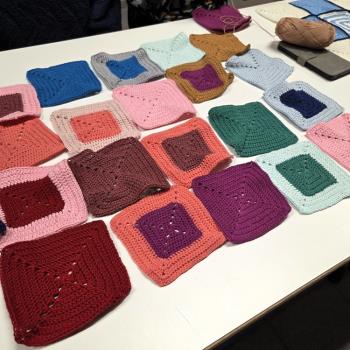 Voor de meeste loopt het granny squares haken af. De kussens staan in elkaar, de draadjes instoppen en nog een beetje afwerken. Zij die een plaid maken, moeten nog wat lapjes haken, maar we hebben het volste vertrouwen in een goede, mooie en warme afloop.